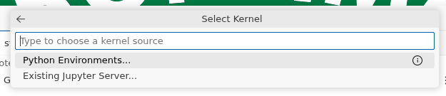 click the Select Kernel > Python Environments … and select the default (recommended) kernel listed at the top.